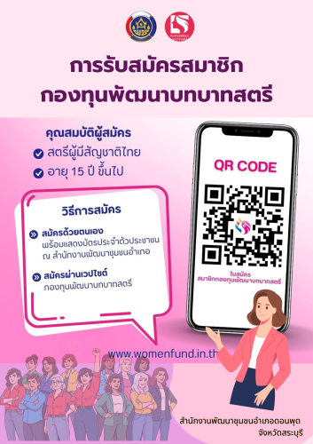 สำนักงานพัฒนาชุมชนอำเภอดอนพุด ประชาสัมพันธ์การขอรับการสนับสนุนเงินทุนหมุนเวียนกองทุนพัฒนาบทบาทสตรี